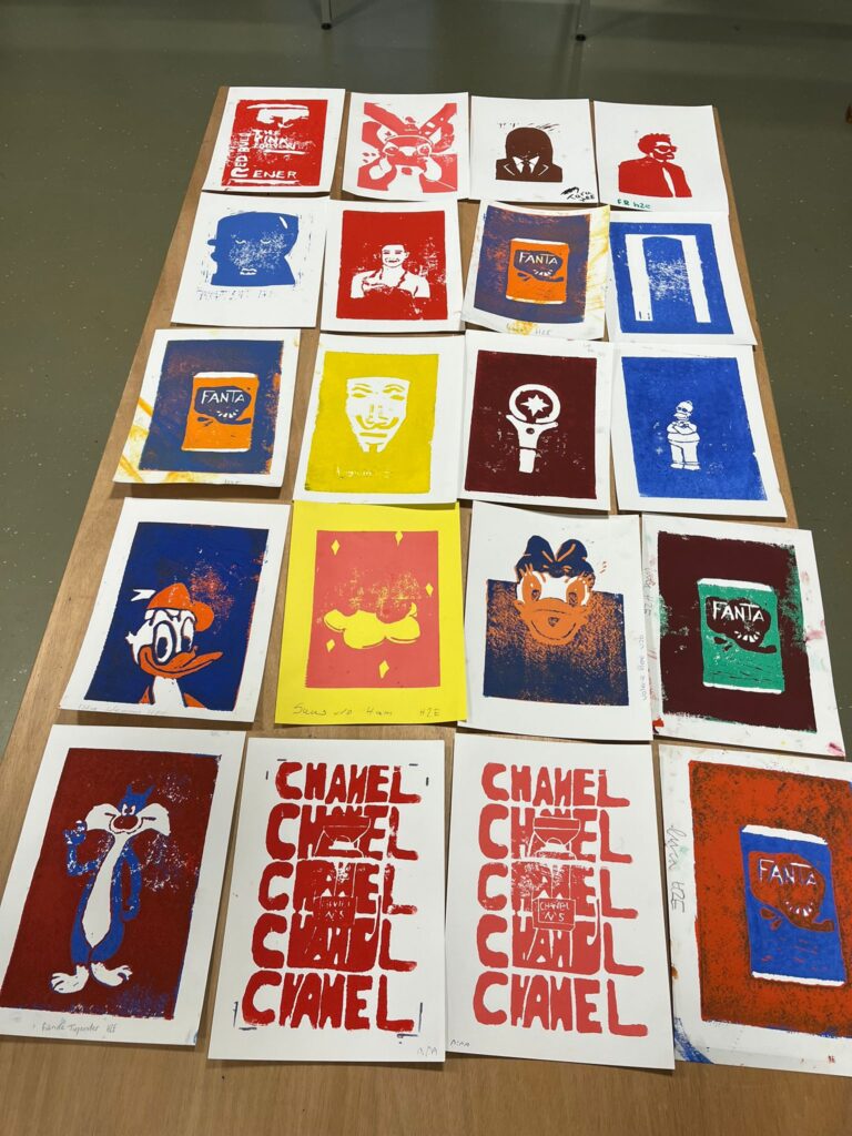 H2 en V2 gingen aan de slag met linoverf en linoleumplaatjes en maakten prachtige linoafdrukken.