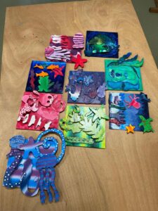 Daarnaast maakte een andere H2-klas dieren die in een aquarium voorkomen, geschilderd op MDF-plaatjes in warme of juist koude kleuren.