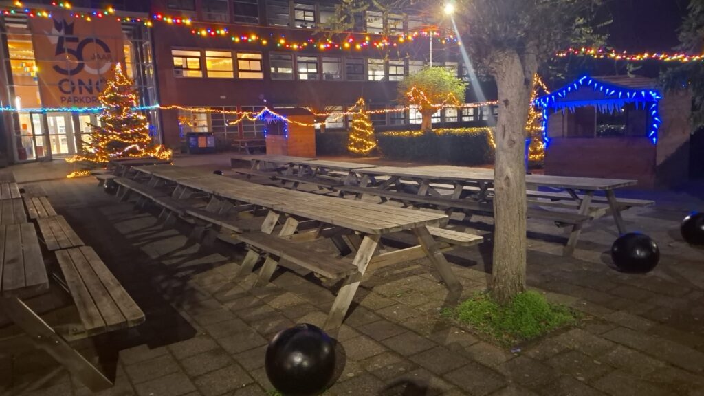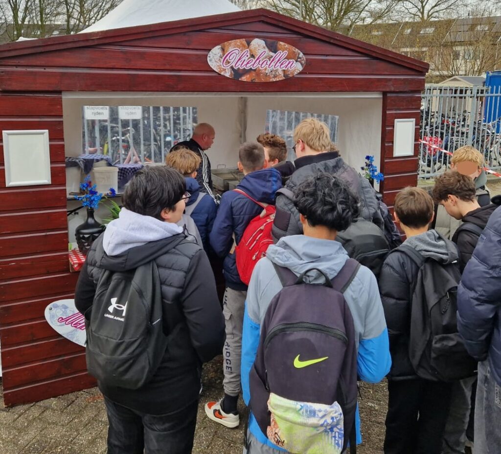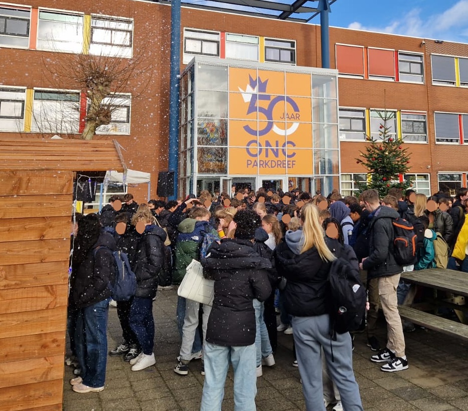 Vandaag werden al onze leerlingen verrast met een heerlijke kersttraktatie ter gelegenheid van ons 50-jarig bestaan. Iedereen kon een versgebakken oliebol en een bekertje warme chocolademelk met slagroom ophalen.