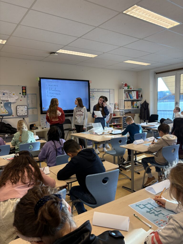 Voor de basisschoolleerlingen was het inspirerend om les te krijgen van “echte” middelbare scholieren. En voor onze leerlingen was het een waardevolle ervaring om voor de klas te staan, verantwoordelijkheid te nemen en hun Engels op een praktische manier in te zetten.