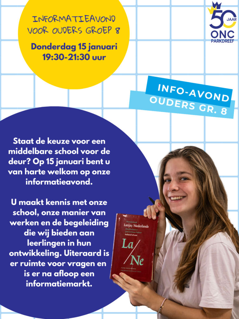 Informatieavond voor ouders groep 8: Donderdag 15 januari 2026 van 19:30-21:30 uur.