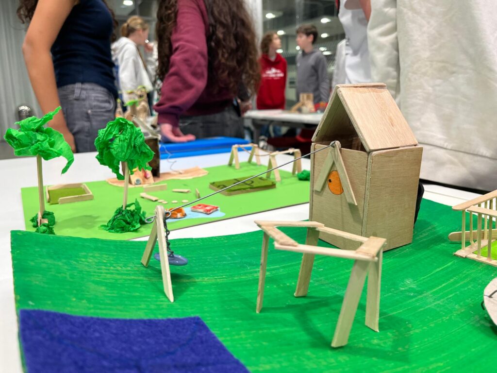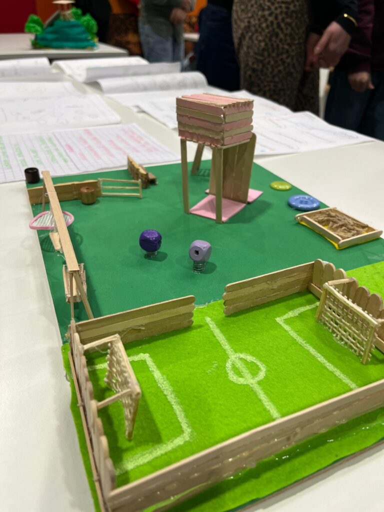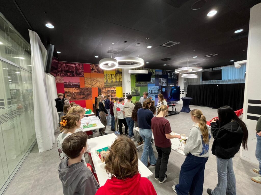 De afronding vond plaats op een bijzondere locatie: het gemeentehuis van Zoetermeer. Teams uit verschillende klassen presenteerden daar hun ontwerp en lichtten in vijf minuten hun proces en keuzes toe. De gemeente nam de ontwerpen en foto’s van de maquettes in ontvangst als inspiratie voor het definitieve ontwerp van de nieuwe speelplek. Een mooie afsluiting van een project waarin leerlingen niet alleen leerden ontwerpen, maar ook daadwerkelijk input konden leveren voor een echt, maatschappelijk project.
