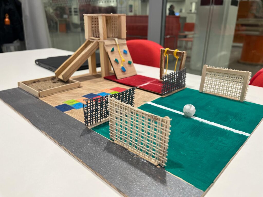 De leerlingen doorliepen een volledig ontwerpproces: van brainstormen en het maken van persona’s tot schetsen, conceptontwerpen en speelplannen. Uiteindelijk werkten zij hun ideeën uit tot een 3D-ontwerp, inclusief maquette en technische tekening. Gedurende het project bezochten zij de locatie, werkten ze in teams en ontvingen ze feedback van betrokken experts Bas Janson Goossens en Evelien Verheugd.