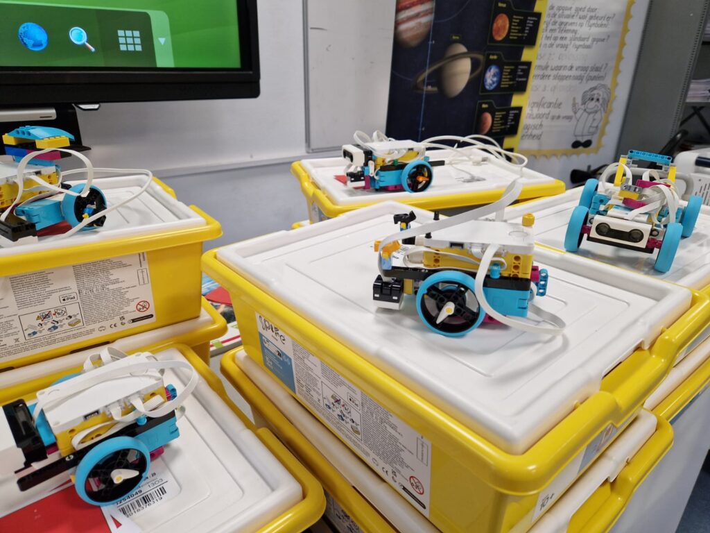 Tijdens de talentklas Research & Technology gingen onze leerlingen aan de slag met Spike Prime. Ze bouwden eerst zelf een robot, voegden vervolgens een kleursensor en IR-sensor toe en programmeerden hun robot daarna met blokcode om zelfstandig een parcours af te leggen.