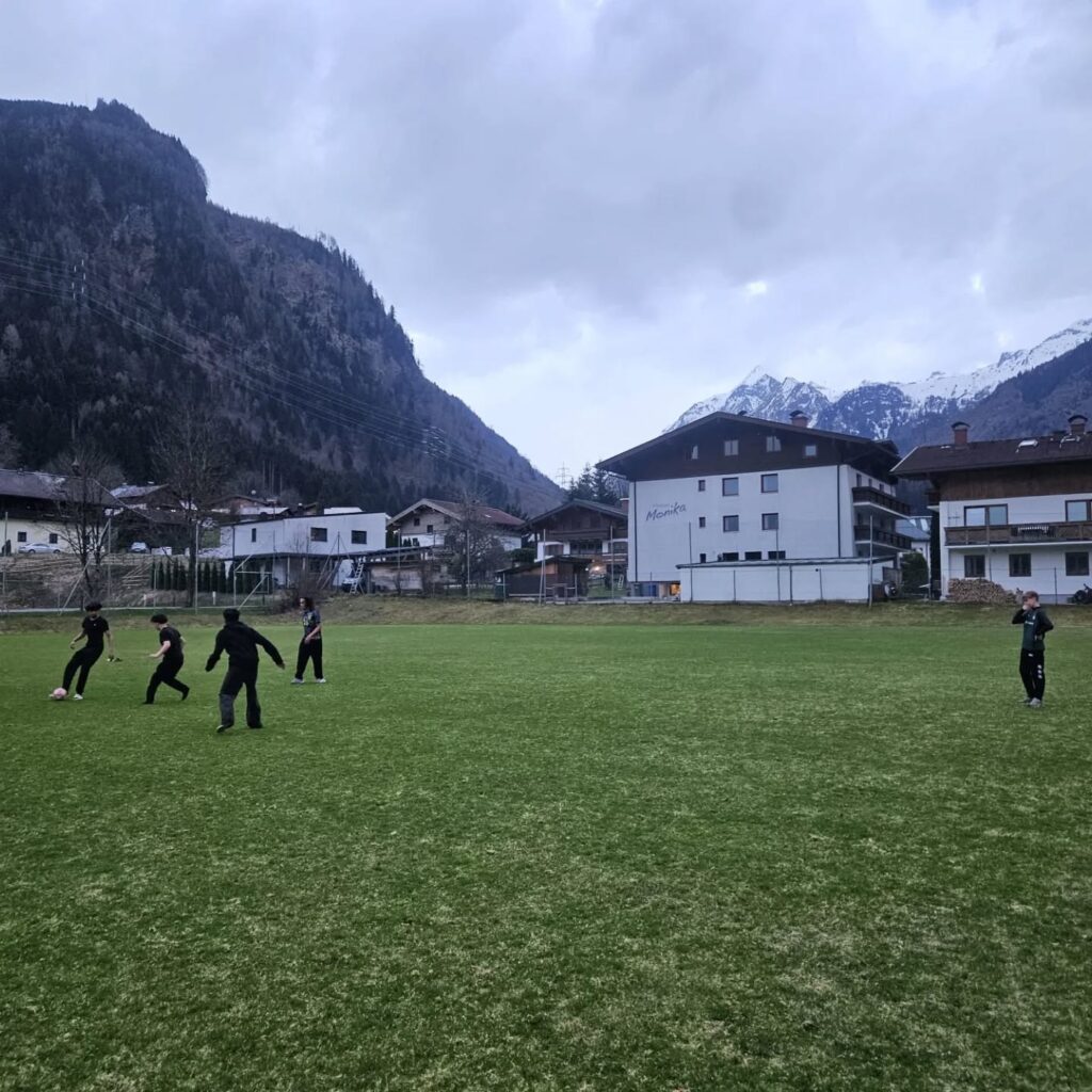 We trappen af met beelden uit Oostenrijk waar de leerlingen heerlijk aan het wintersporten waren in de Oostenrijkse Alpen. Na alle pret in de sneeuw was het tijd voor een potje voetbal tussen de bergen.